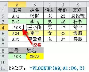 例5:如下图所示根据工号查找姓名,查找出现错误