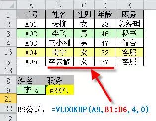 例2 如下图所示根据姓名查找职务时产生查找错误。