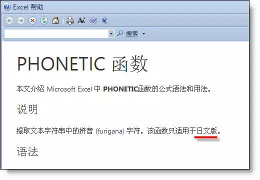 帮助上说,这个函数只能在日文版中使用