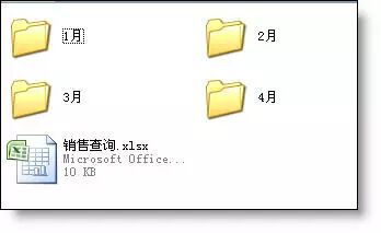 【例】如下图所示的文件夹中,每个月份文件夹中都有一个“销信月报.xlsx”的excel文件,要求在“销售查询”的文件中实现动态查询。