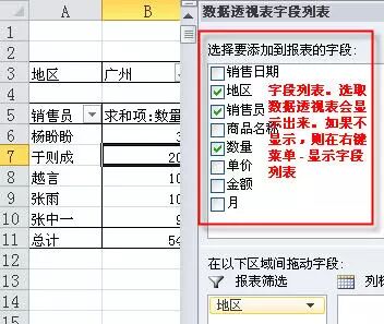 1 字段列表。明细表的所有第一行列标题都会显示在“字段列表”中。相当于数据透视表的原材料基地。