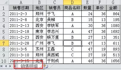销售明细表: