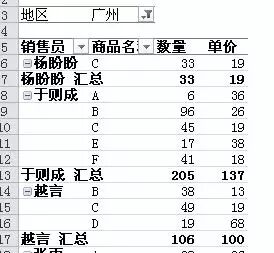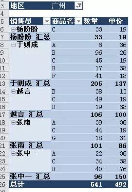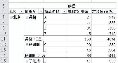 根据地区、销售员、商品名称汇总