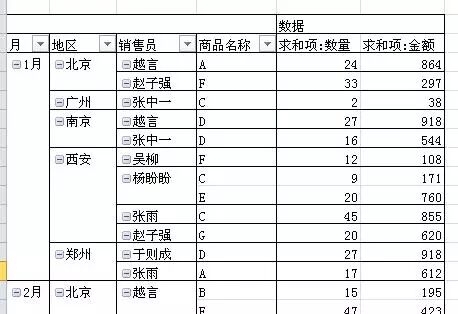 根据月份、地区、销售员、商品名称汇总