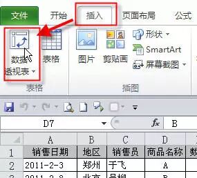 第1步 选取销售明细表,excel2003版 : 数据菜单 - 数据透视表(Excel2010版:插入选项卡 - 数据透视表 )