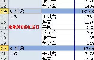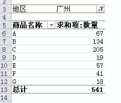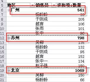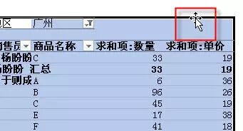 当你把光标放在数据透视表的某行或某列前面时,你会发现光标变成了黑箭头。这时你只需要单击就可以选取所有和本行列有关的行或列了。