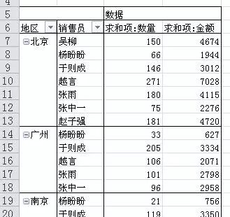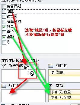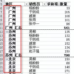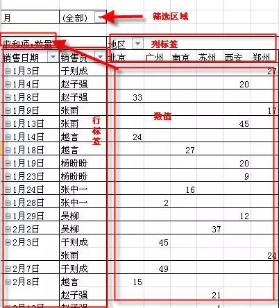 B 行标签(2003版称为行字段)。该区域的字段会上下排列显示,如上图中“销售地区”和“销售员”字段。