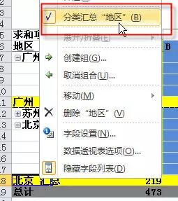 控制它隐藏和显示的命令在 数据透视表右键 - 选项 - 如下图所示。(2003版在数据透视表上右键 - 表格选项 - 行和列总计选中)
