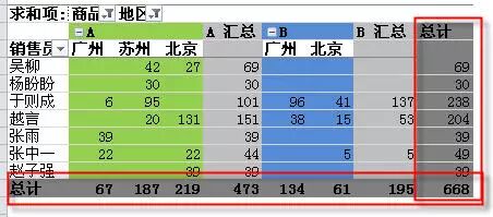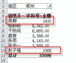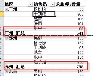 根据地区和销售员汇总