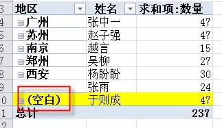 本讲最后介绍一个小技巧,上图中,如果你想把“求和项:数量”改成“数量”会提示无法更改,解决方法是可以在字段名后添加一个空格。即“数量 ”。