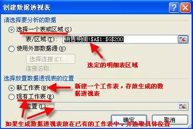 第2步 执行“数据透视表”命令后,会进入数据透视表创建向导。(excel2003和excel2010稍有差异,但大体选项是一样的)在向导的第一步一般是默认选项,不需要设置,直接点确定即可(excel2003版在第一步点“完成”按钮)。
