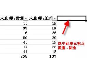 另:选取“求和项:单价”右边单元格 ,执行 数据 - 筛选命令,即可使用excel的自带筛选功能。如下图所示。