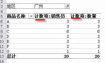 原因:如果把含文本格式内容的列拖放到值区域,统计方式默认“计数”,显示为“计数项:字段名”。本例中,一是误把销售员放在了值区域,二是在销售量列可能含有文本型内容。