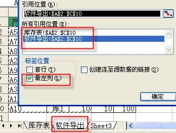 步骤3:同上一步再把财务软件表的A2:C10区域添加进来。标签位置:选取“最左列”,如下图所示。
