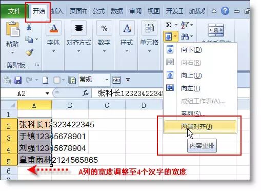 其实,有比这个更快的方法,不需要任何公式和函数。只需要把A列调整至4个汉字的宽度,然后执行: 开始 - 填充 - 两端对齐