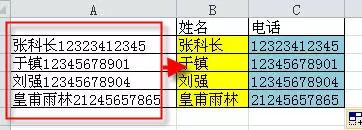 执行后的姓名和手机号码已经完全分离出来,如下图所示