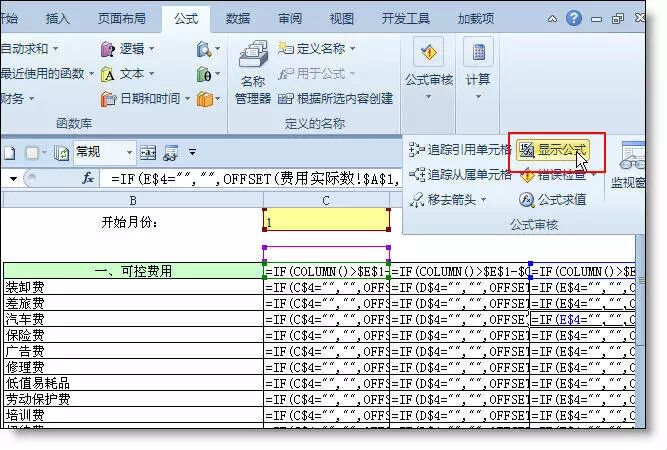 点公式审核中的“显示公式”,所有公式都会现出原形。