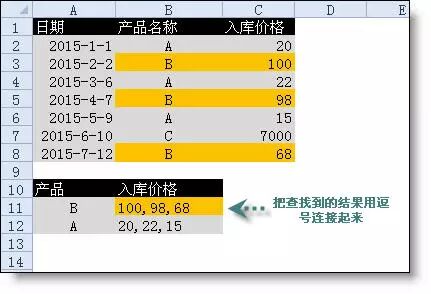 5、实现多结果查找功能。(把所有符合条件结果用逗号连接起来)