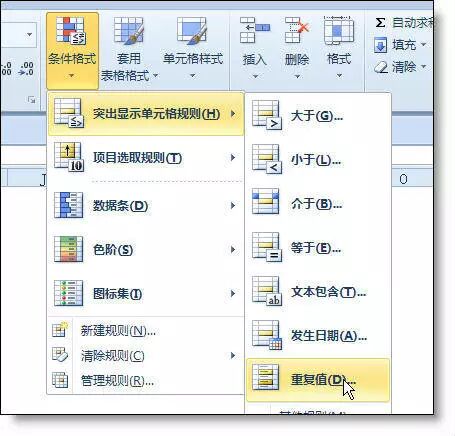 选取列 - 开始 - 条件格式 - 突出显示单元格规则 - 重复值