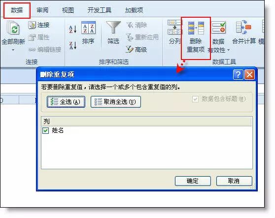选取区域 - 数据 - 删除重复项
