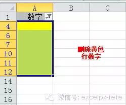步骤4:筛选出B列值为A的行,删除A列数字。