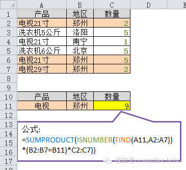 多条件模糊求和,算是真的遇到了一个难题。因为sumif虽然可以条件求和,但不支持多条件,sumifs可以多条件求和,但不能使用通配符。不过可以用sumproduct+isnumber+find组合来完成。