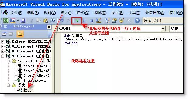 按alt+f11打开VBE编辑器(有FN要同时按FN),在打开的窗口中,插入 - 模块。在右侧窗口中快速输入下面的代码。最后点工具栏中“运行”按钮。发现表格已从被保护的表中粘贴到新表中。至此,问题完美解决!
